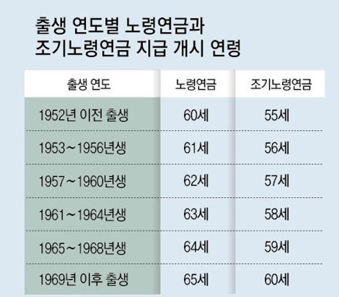 - 나이 제한: 조기수령을 위한 최소 연령은 만 55세입니다.