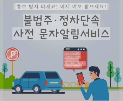 주정차단속알림서비스란 주정차지역의 차량에 대해 과태료 부과 전 신청자에게 사전경고 안내 메시지를 발송해주는 서비스입니다.