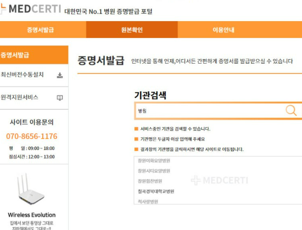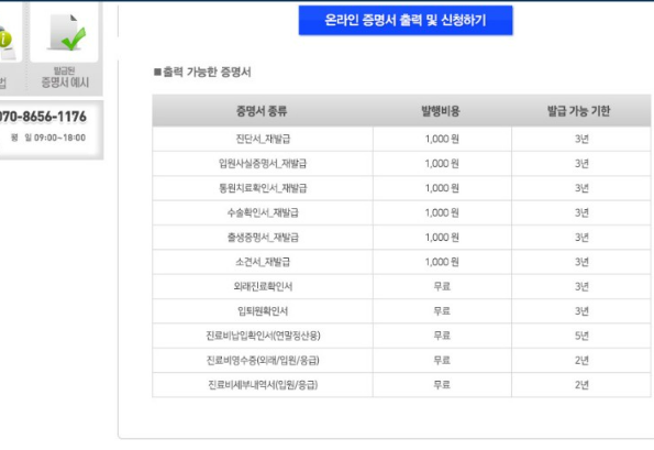 진단서, 입퇴원확인서, 병원영수증 등 병원증명서 인터넷발급, 검진결과서 발급솔루션