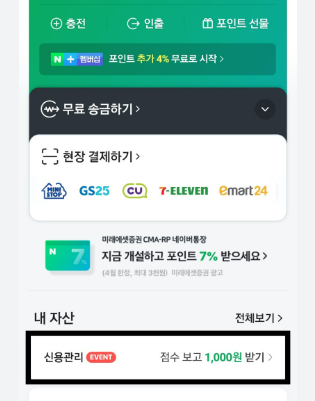 - 신용점수 올리기: 네이버페이에서는 '신용점수 올리기' 기능도 제공합니다. 이 기능을 통해 경제활동을 증빙하는 서류를 제출하여 신용점수를 향상시킬 수 있습니다