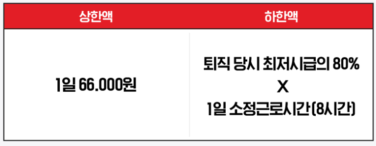 실업급여 금액은 퇴직 하기 전 평균임금의 60%를 기준으로 산정됩니다. 이때, 하루 상한액은 66,000원, 하루 하한액은 최저임금의 80%에 해당하는 금액이 실업급여 금액입니다.