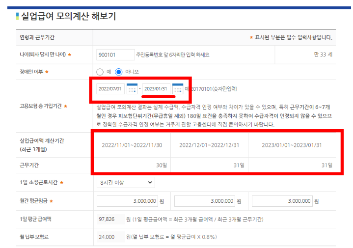실업급여 모의계산