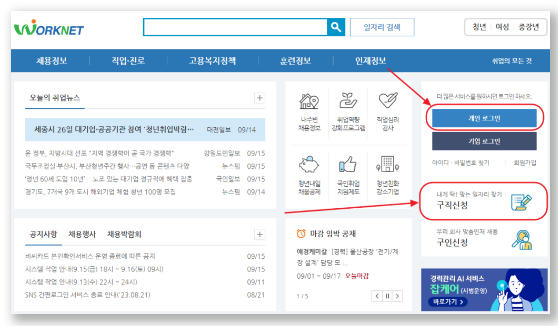 - 구직등록: 먼저 워크넷에 접속하여 구직등록을 합니다.