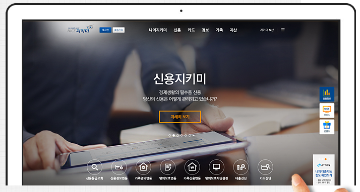 - NICE지키미나 올크레딧 웹사이트에 접속하여 회원가입 후, 신용점수 조회 서비스를 이용할 수 있습니다.