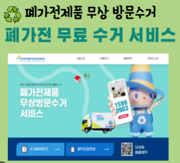- 수거 일자: 폐가전 무료수거 가능한 지역 및 지정된 수거요일은 15990903 홈페이지에서 확인 가능합니다