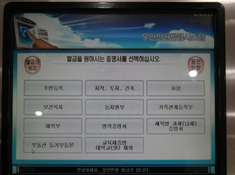 무인민원발급기 발급 가능 서류